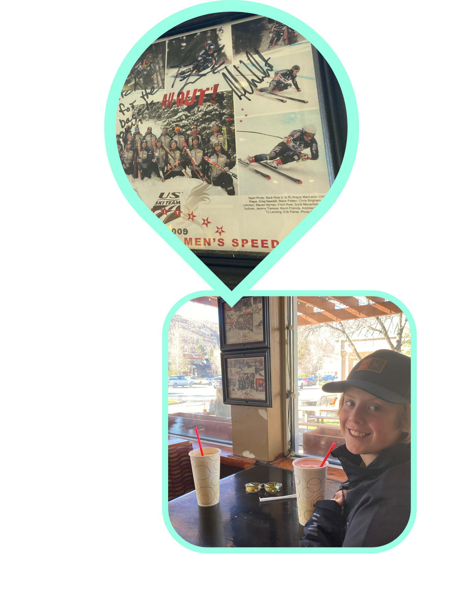 Been traveling to some cool spots this Fall with my son and his AA Bantam ice hockey team. While in Park City last weekend grabbing a quick bite at Wasatch Bagel & Grill, Sal and I sat down next to the 2008-2009 US Ski Team. Pictured in frames on the wall were team and action shots, including MWSC's Erik Fisher skiing at world record speed. Excited to watch more Olympic ski action this season!